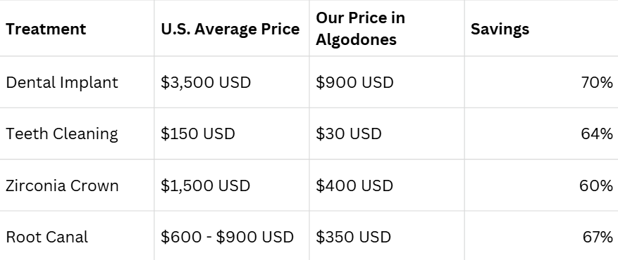 Thousands of U.S. & Canadian patients choose Los Algodones every year because the savings are simply too good to ignore. You’ll receive the same world-class treatments for a fraction of the cost: